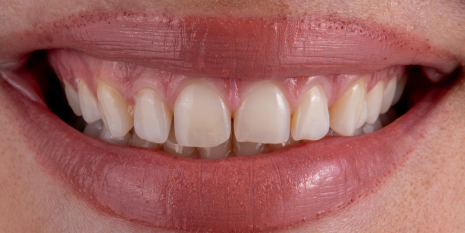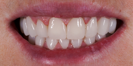With this solution, the esthetics of her otherwise strong and healthy teeth were restored, and she can now confidently show her smile without hiding it.